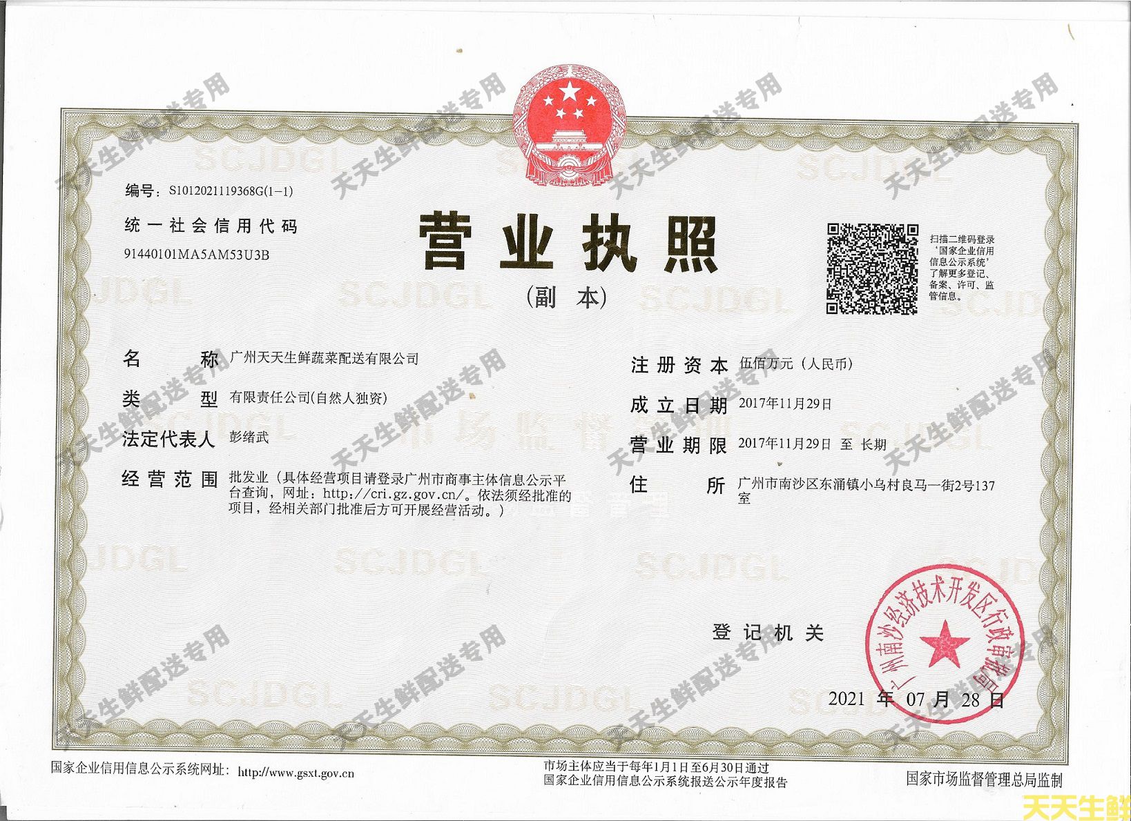 廣州天天生鮮蔬菜配送有限公司